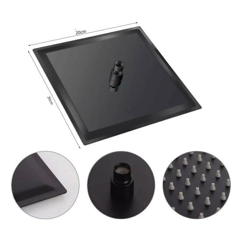Kit Grifería Agua Fria+ Ducha 20cm+monocontrol Redondo Negro