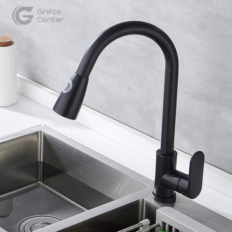 Griferia Lavaplatos Extraible Con Cabezal Móvil Negro Mate