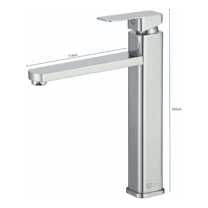 Grifería Monocontrol Lavamanos Alta Cuadrada Cromada