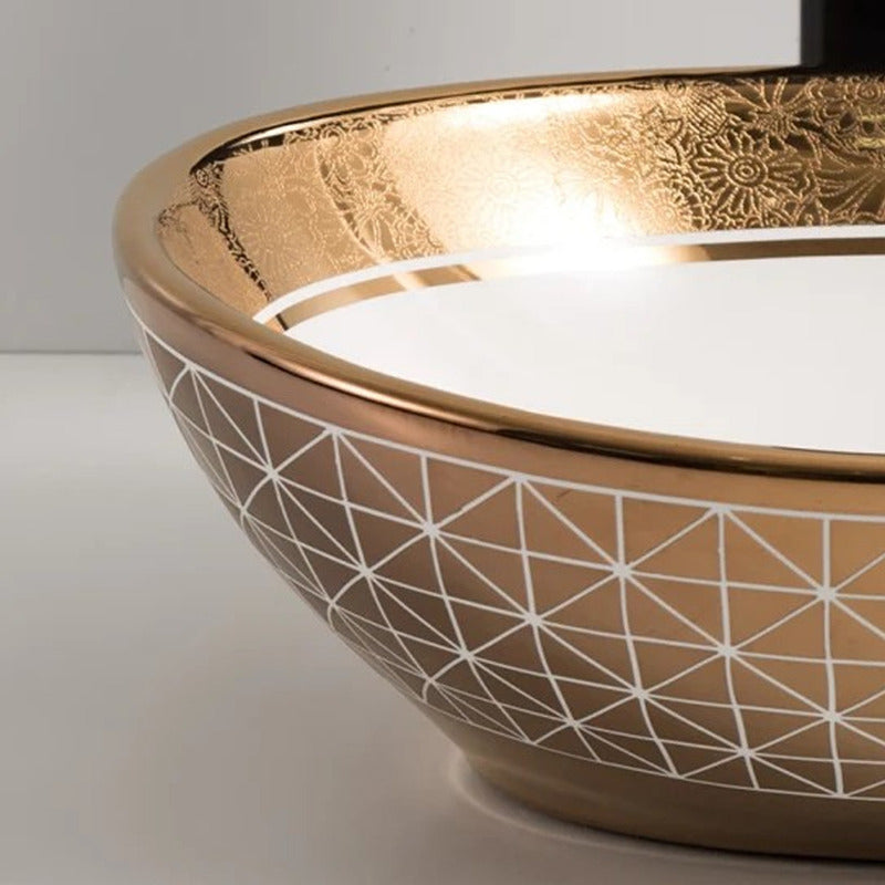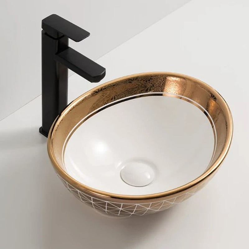 Lavamanos Tipo Canoa Blanco/dorado Persa
