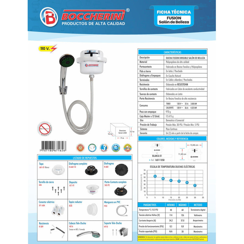 Sku: 1201110SB - 1201220SB Boch Ducha Victory Salon de Belleza Blanca Las duchas eléctricas te permiten encontrar la temperatura perfecta de manera ilimitada, esta ducha es ideal para salones de belleza. -Venta factura régimen común. -También contamos con variedad de tonos. -Somos fabricantes de sus ideas. -------------ENTREGA DEL PRODUCTO ENTRE 1 A 2 DIAS EN CIUDADES PRINCIPALES Y DE NO SER ASI DE 2 A 3 DIAS HABILES ---------------------------------- -SOMOS FABRICANTES EN GRIFERIAS, LAVAMANOS Y ACCESORIOS VITAGE- SE REALIZA ACABADO (ANTIGUO) A TODA CLASE DE GRIFERIAS NUEVAS O USADAS. ¿Generan factura legal Electrónica? Si. Generamos facturas legal electrónica con IVA incluido. Somos régimen común. ¿Mi compra tiene garantía? Si. Todos nuestros productos son nuevos y cuentan con garantía oficial. Se entregan en sus empaques o cajas originales. ¿Tiene punto de venta? SI, somos GRIFOS CENTER y tenemos nuestro punto de venta, puedes recoger tus productos directamente si deseas, o enviar por otra transportadora colocando recojo en el domicilio del vendedor, en este último el comprador cancela el envío cuando llegue el producto ¿Dónde están ubicados? No solo somos tienda online, también tenemos tienda física con un amplio Stock de nuestros productos para envío inmediato, GRIFOS CENTER esta ubicado en el Norte de Bogotá podemos entregarte el mismo día dependiendo el producto y cantidad. •Recuerda que somos GRIFOS CENTER para mayor información ¿ Son fabricantes? - Si, GRIFOS CENTER es fabricante directo de griferías, lavamanos y accesorios VINTAGE (fabricando tus ideas y ofreciendo diferentes estilos de acabados para tu grifería). Además, brindamos una amplia variedad de productos para todos tus proyectos de construcción y remodelación tanto institucionales, diseños de lujo y línea para el hogar, garantizándote acabados de la mejor calidad. ¿Ofrecen productos al por mayor? - Si, en GRIFOS CENTER contamos con un amplio inventario y variedad de productos para atender proyectos grandes como lo son las constructoras, hoteles, colegios y grandes superficies. ¿ Hacen envíos a nivel nacional? - Si GRIFOS CENTER realiza envíos a nivel nacional. ¿Qué garantías manejan? -Según la referencia comprada generalmente tiene garantía de 1 año donde nos podrás informar cualquier inconveniente NOTA: Los logos en la publicación son marcas de agua el producto te llegara sin este logo -----------------SOMOS IMPORTADORES Y FABRICANTES CON MARCA PROPIA-------