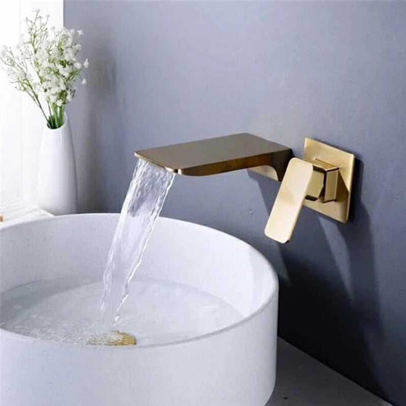 Grifería Monocontrol Lavamanos Pared Cascada Dorado Vintage