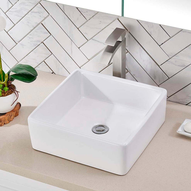 Lavamanos En Cerámica De Sobreponer Cuadrado Blanco 39*39