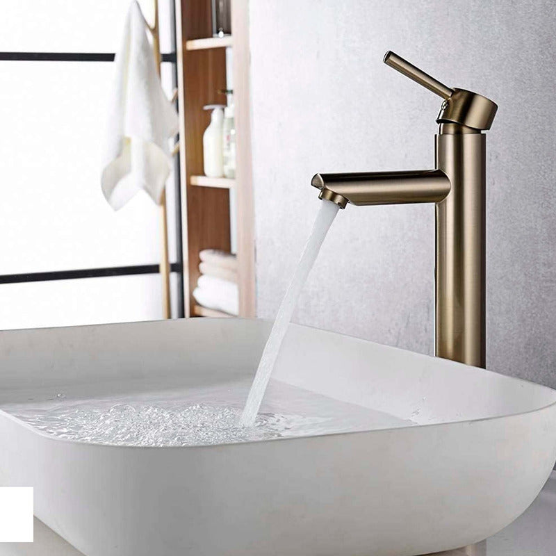 Grifería Monocontrol Lavamanos Alto Oro Cepillado Vintage