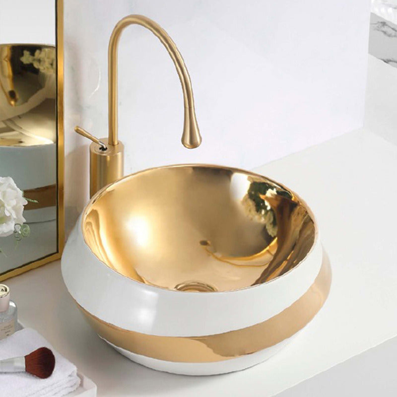 Lavamanos De Sobreponer Blanco/dorado Vintage