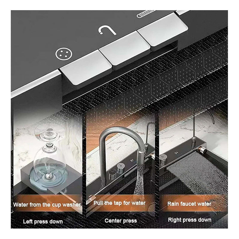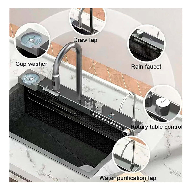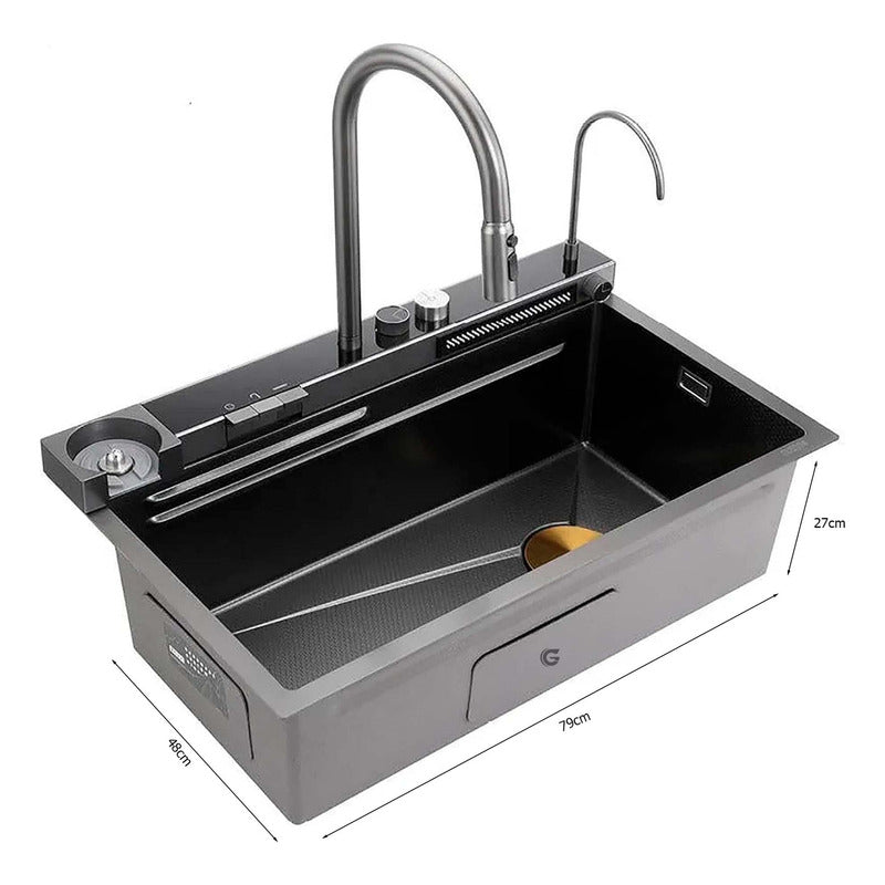 SKU: KS7546 Bru Lavaplatos Inteligente Negro 79x48x27cm Hermoso lavaplatos inteligente multifuncional será tu aliado ideal, incluye lavadero de vasos, grifos tipo lluvia, control giratorio de salida de agua, grifo de purificación de agua entre otros. PREGUNTAS FRECUENTES ¿GENERAN FACTURA? Sí, emitimos facturas legales con IVA incluido. Somos un régimen común y realizamos facturación electrónica. ¿MANEJAN VARIEDAD DE TONOS? Sí, manejamos una amplia gama de colores, como bronce y cobre antiguo, para personalizar tus griferías y accesorios. Realizamos acabados de aspecto antiguo en griferías nuevas o usadas. Transformamos tus griferías para darles un toque clásico y elegante. ¿SON FABRICANTES? Sí, somos fabricantes de tus ideas. Fabricamos hermosas griferías y accesorios de excelente calidad para embellecer tus espacios de la mejor manera. En GRIFOS CENTER, convertimos tus ideas en realidad. Fabricamos griferías VINTAGE y ofrecemos diversos estilos de acabados antiguos para tus griferías y accesorios. Además, proporcionamos una amplia variedad de productos de alta calidad para el hogar y productos institucionales para tus proyectos. ¿GENERAN FACTURA LEGAL Y ELECTRÓNICA? Sí, generamos factura legal con IVA incluido y ofrecemos facturación electrónica. ¿MI COMPRA TIENE GARANTÍA? Todos nuestros productos son nuevos y cuentan con garantía oficial de 1 año. Se entregan en sus empaques o cajas originales. ¿TIENEN PUNTO DE VENTA? Sí, somos GRIFOS CENTER y tenemos un punto de venta físico donde puedes recoger tus productos directamente si lo deseas. ¿DÓNDE ESTÁN UBICADOS? Nos encontramos en el Norte de Bogotá. Tenemos un amplio stock de nuestros productos para envío inmediato. Además, ofrecemos la opción de recoger tus compras en nuestro punto de venta. ¿MANEJAN PRODUCTOS PARA PROYECTOS? Sí, ofrecemos una amplia variedad de productos y contamos con un extenso inventario para atender proyectos grandes, como constructoras, hoteles, colegios y grandes superficies. ¿OFRECEN PRODUCTOS AL POR MAYOR? Sí, contamos con un extenso inventario y una gran variedad de productos para atender tus solicitudes. ¿HACEN ENVÍOS A NIVEL NACIONAL? Sí, GRIFOS CENTER realiza envíos a nivel nacional. ¿SE PUEDEN RETIRAR LOS PRODUCTOS EN EL PUNTO DE VENTA? Ofrecemos la opción de retirar productos en nuestro punto de venta o de enviarlos por otra transportadora, seleccionando "recojo en el domicilio del vendedor". En este caso, el comprador se encarga del costo del envío. NOTA IMPORTANTE: Los logos en la publicación son marcas de agua y el producto te llegará sin este logo. ----------------------SOMOS IMPORTADORES CON MARCA PROPIA---------------------