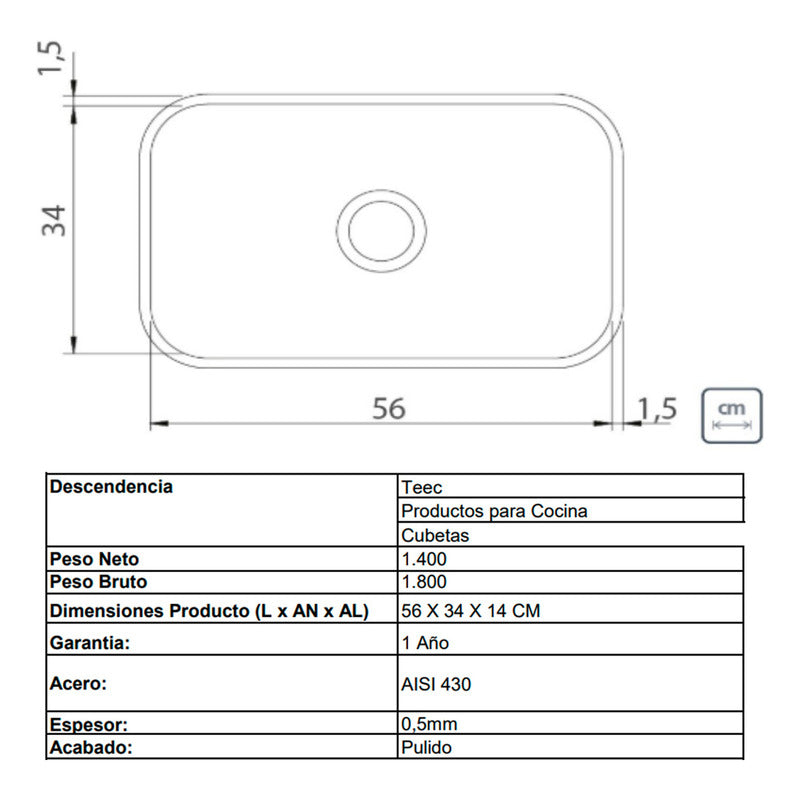 Esta poceta rectangular de Tramontina se fabrica en acero inoxidable AISI 304 con acabado Pulido , ideal para componer con elegancia y practicidad los más diversos proyectos de cocina. Con borde liso y gran profundidad para el quehacer doméstico, es muy resistente, durable, más higiénica y de excelente presentación. Características: Acabado: Pulido Medida: Alto 15 Cm, Ancho 34 Cm, Largo 56 Cm. Material: Acero Inoxidable. Instalación: Hazlo tú mismo. Garantía: 1 Año. Fabricación: Brasil. Uso: Lavaplatos. Contenido de la caja: Lavaplatos Rectangular. Cubeta Retangular 56 BL Las cubetas rectangulares de Tramontina se fabrican en acero AISI 430 con acabado Pulido, ideales para componer con elegancia y practicidad los más diversos proyectos de cocina. Con borde liso y más profundidad para el quehacer doméstico, las piezas se ofrecen en tres opciones de tamaño.PREGUNTAS FRECUENTES ¿GENERAN FACTURA? Sí, emitimos facturas legales con IVA incluido. Somos un régimen común y realizamos facturación electrónica. ¿MANEJAN VARIEDAD DE TONOS? Sí, manejamos una amplia gama de colores, como bronce y cobre antiguo, para personalizar tus griferías y accesorios. Realizamos acabados de aspecto antiguo en griferías nuevas o usadas. Transformamos tus griferías para darles un toque clásico y elegante. ¿SON FABRICANTES? Sí, somos fabricantes de tus ideas. Fabricamos hermosas griferías y accesorios de excelente calidad para embellecer tus espacios de la mejor manera. En GRIFOS CENTER, convertimos tus ideas en realidad. Fabricamos griferías VINTAGE y ofrecemos diversos estilos de acabados antiguos para tus griferías y accesorios. Además, proporcionamos una amplia variedad de productos de alta calidad para el hogar y productos institucionales para tus proyectos. ¿GENERAN FACTURA LEGAL Y ELECTRÓNICA? Sí, generamos factura legal con IVA incluido y ofrecemos facturación electrónica. ¿MI COMPRA TIENE GARANTÍA? Todos nuestros productos son nuevos y cuentan con garantía oficial de 1 año. Se entregan en sus empaques o cajas originales. ¿TIENEN PUNTO DE VENTA? Sí, somos GRIFOS CENTER y tenemos un punto de venta físico donde puedes recoger tus productos directamente si lo deseas. ¿DÓNDE ESTÁN UBICADOS? Nos encontramos en el Norte de Bogotá. Tenemos un amplio stock de nuestros productos para envío inmediato. Además, ofrecemos la opción de recoger tus compras en nuestro punto de venta. ¿MANEJAN PRODUCTOS PARA PROYECTOS? Sí, ofrecemos una amplia variedad de productos y contamos con un extenso inventario para atender proyectos grandes, como constructoras, hoteles, colegios y grandes superficies. ¿OFRECEN PRODUCTOS AL POR MAYOR? Sí, contamos con un extenso inventario y una gran variedad de productos para atender tus solicitudes. ¿HACEN ENVÍOS A NIVEL NACIONAL? Sí, GRIFOS CENTER realiza envíos a nivel nacional. ¿SE PUEDEN RETIRAR LOS PRODUCTOS EN EL PUNTO DE VENTA? Ofrecemos la opción de retirar productos en nuestro punto de venta o de enviarlos por otra transportadora, seleccionando "recojo en el domicilio del vendedor". En este caso, el comprador se encarga del costo del envío. NOTA IMPORTANTE: Los logos en la publicación son marcas de agua y el producto te llegará sin este logo. ----------------------SOMOS IMPORTADORES CON MARCA PROPIA-----------------------
