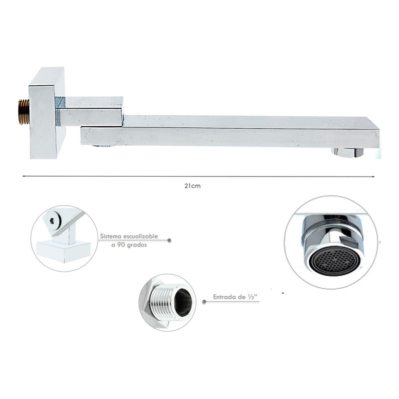 Pico / Grifería De Tina Cuadrado Escualizable Cromado