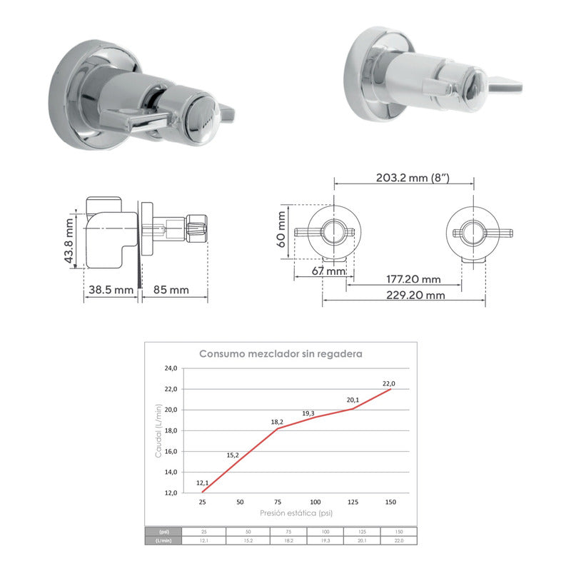 Mezclador Ducha 8 Sin Regadera Helix Pala