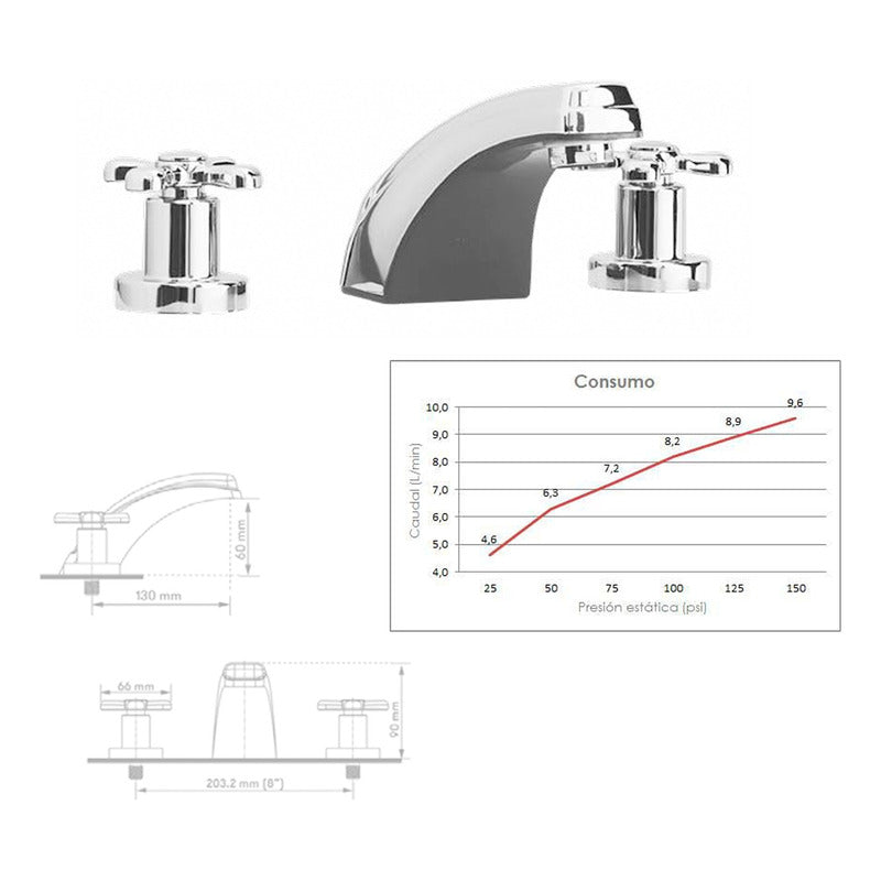 Griferia Mezclador para Lavamanos de 8 Pulgadas Atlantico SKU: 01-1303-11 Características Generales Sistema de cierre con pastillas cerámicas para máxima durabilidad con un desempeño óptimo Cierre fácil de 1/4 de giro Cuerpo en resina de alta ingeniería y manijas metálicas Instalación de tres huecos Aireador incorporado para un bajo consumo de agua Cromado resistente al desgaste y la corrosión No incluye conectores Características Técnicas Conexión: 1/2 "macho Consumo promedio: 5,2 L / min a 80 psi Cumplimiento de normas: NTC 1644 Temperatura de trabajo: 5 ° CA 71 ° C PREGUNTAS FRECUENTES ¿GENERAN FACTURA? Sí, emitimos facturas legales con IVA incluido. Somos un régimen común y realizamos facturación electrónica. ¿MANEJAN VARIEDAD DE TONOS? Sí, manejamos una amplia gama de colores, como bronce y cobre antiguo, para personalizar tus griferías y accesorios. Realizamos acabados de aspecto antiguo en griferías nuevas o usadas. Transformamos tus griferías para darles un toque clásico y elegante. ¿SON FABRICANTES? Sí, somos fabricantes de tus ideas. Fabricamos hermosas griferías y accesorios de excelente calidad para embellecer tus espacios de la mejor manera. En GRIFOS CENTER, convertimos tus ideas en realidad. Fabricamos griferías VINTAGE y ofrecemos diversos estilos de acabados antiguos para tus griferías y accesorios. Además, proporcionamos una amplia variedad de productos de alta calidad para el hogar y productos institucionales para tus proyectos. ¿GENERAN FACTURA LEGAL Y ELECTRÓNICA? Sí, generamos factura legal con IVA incluido y ofrecemos facturación electrónica. ¿MI COMPRA TIENE GARANTÍA? Todos nuestros productos son nuevos y cuentan con garantía oficial de 1 año. Se entregan en sus empaques o cajas originales. ¿TIENEN PUNTO DE VENTA? Sí, somos GRIFOS CENTER y tenemos un punto de venta físico donde puedes recoger tus productos directamente si lo deseas. ¿DÓNDE ESTÁN UBICADOS? Nos encontramos en el Norte de Bogotá. Tenemos un amplio stock de nuestros productos para envío inmediato. Además, ofrecemos la opción de recoger tus compras en nuestro punto de venta. ¿MANEJAN PRODUCTOS PARA PROYECTOS? Sí, ofrecemos una amplia variedad de productos y contamos con un extenso inventario para atender proyectos grandes, como constructoras, hoteles, colegios y grandes superficies. ¿OFRECEN PRODUCTOS AL POR MAYOR? Sí, contamos con un extenso inventario y una gran variedad de productos para atender tus solicitudes. ¿HACEN ENVÍOS A NIVEL NACIONAL? Sí, GRIFOS CENTER realiza envíos a nivel nacional. ¿SE PUEDEN RETIRAR LOS PRODUCTOS EN EL PUNTO DE VENTA? Ofrecemos la opción de retirar productos en nuestro punto de venta o de enviarlos por otra transportadora, seleccionando "recojo en el domicilio del vendedor". En este caso, el comprador se encarga del costo del envío. NOTA IMPORTANTE: Los logos en la publicación son marcas de agua y el producto te llegará sin este logo. ----------------------SOMOS IMPORTADORES CON MARCA PROPIA-----------------------