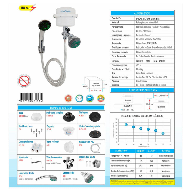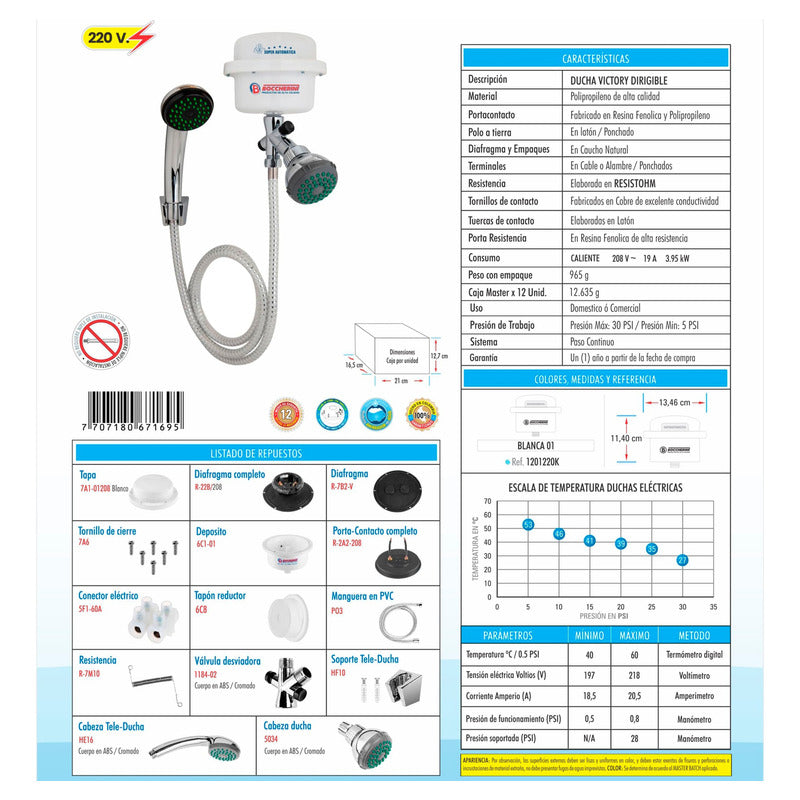 Ducha Eléctrica Salón de Belleza Auto. Con Teleducha Negra SKU: 1207110K - 1207220K BOCH PREGUNTAS FRECUENTES ¿GENERAN FACTURA? Sí, emitimos facturas legales con IVA incluido. Somos un régimen común y realizamos facturación electrónica. ¿MANEJAN VARIEDAD DE TONOS? Sí, manejamos una amplia gama de colores, como bronce y cobre antiguo, para personalizar tus griferías y accesorios. Realizamos acabados de aspecto antiguo en griferías nuevas o usadas. Transformamos tus griferías para darles un toque clásico y elegante. ¿SON FABRICANTES? Sí, somos fabricantes de tus ideas. Fabricamos hermosas griferías y accesorios de excelente calidad para embellecer tus espacios de la mejor manera. En GRIFOS CENTER, convertimos tus ideas en realidad. Fabricamos griferías VINTAGE y ofrecemos diversos estilos de acabados antiguos para tus griferías y accesorios. Además, proporcionamos una amplia variedad de productos de alta calidad para el hogar y productos institucionales para tus proyectos. ¿GENERAN FACTURA LEGAL Y ELECTRÓNICA? Sí, generamos factura legal con IVA incluido y ofrecemos facturación electrónica. ¿MI COMPRA TIENE GARANTÍA? Todos nuestros productos son nuevos y cuentan con garantía oficial de 1 año. Se entregan en sus empaques o cajas originales. ¿TIENEN PUNTO DE VENTA? Sí, somos GRIFOS CENTER y tenemos un punto de venta físico donde puedes recoger tus productos directamente si lo deseas. ¿DÓNDE ESTÁN UBICADOS? Nos encontramos en el Norte de Bogotá. Tenemos un amplio stock de nuestros productos para envío inmediato. Además, ofrecemos la opción de recoger tus compras en nuestro punto de venta. ¿MANEJAN PRODUCTOS PARA PROYECTOS? Sí, ofrecemos una amplia variedad de productos y contamos con un extenso inventario para atender proyectos grandes, como constructoras, hoteles, colegios y grandes superficies. ¿OFRECEN PRODUCTOS AL POR MAYOR? Sí, contamos con un extenso inventario y una gran variedad de productos para atender tus solicitudes. ¿HACEN ENVÍOS A NIVEL NACIONAL? Sí, GRIFOS CENTER realiza envíos a nivel nacional. ¿SE PUEDEN RETIRAR LOS PRODUCTOS EN EL PUNTO DE VENTA? Ofrecemos la opción de retirar productos en nuestro punto de venta o de enviarlos por otra transportadora, seleccionando "recojo en el domicilio del vendedor". En este caso, el comprador se encarga del costo del envío. NOTA IMPORTANTE: Los logos en la publicación son marcas de agua y el producto te llegará sin este logo. ----------------------SOMOS IMPORTADORES CON MARCA PROPIA-----------------------