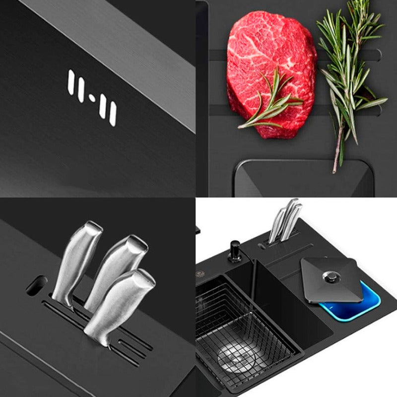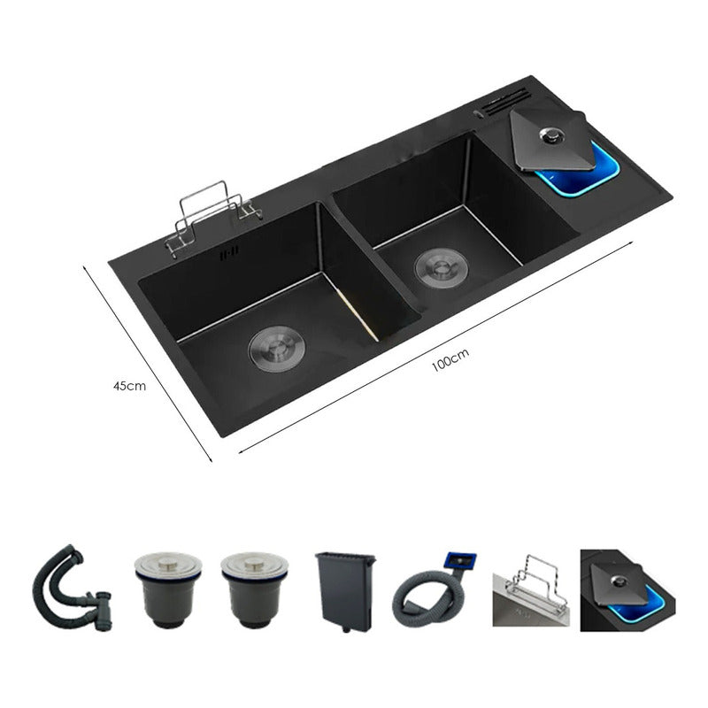 Lavaplatos En Acero Negro 100*45cm Sistema De Deposito