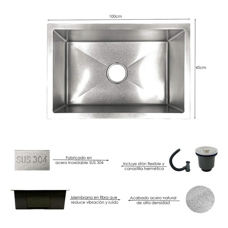 Lavaplatos En Acero De 100*45cm Plateado + Accesorios