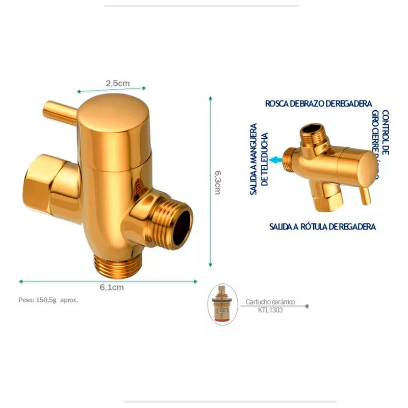 Desviador De Bronce Tipo Registro Ducha Metalico Dorado