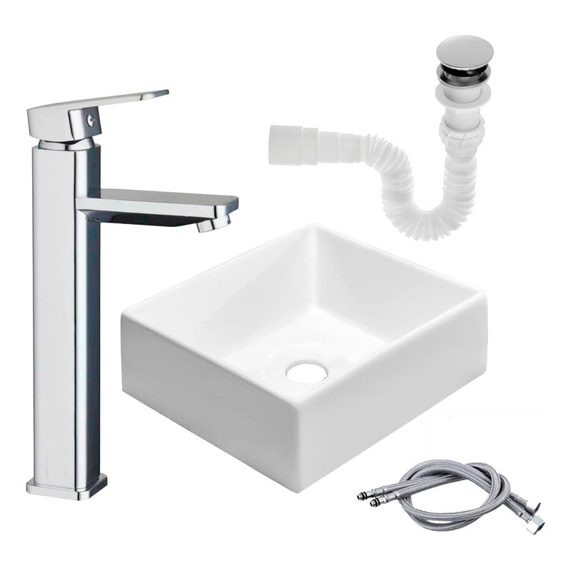Kit Lavamanos Cuadrado+grifo Monocontrol Cuadrada Cromo+push