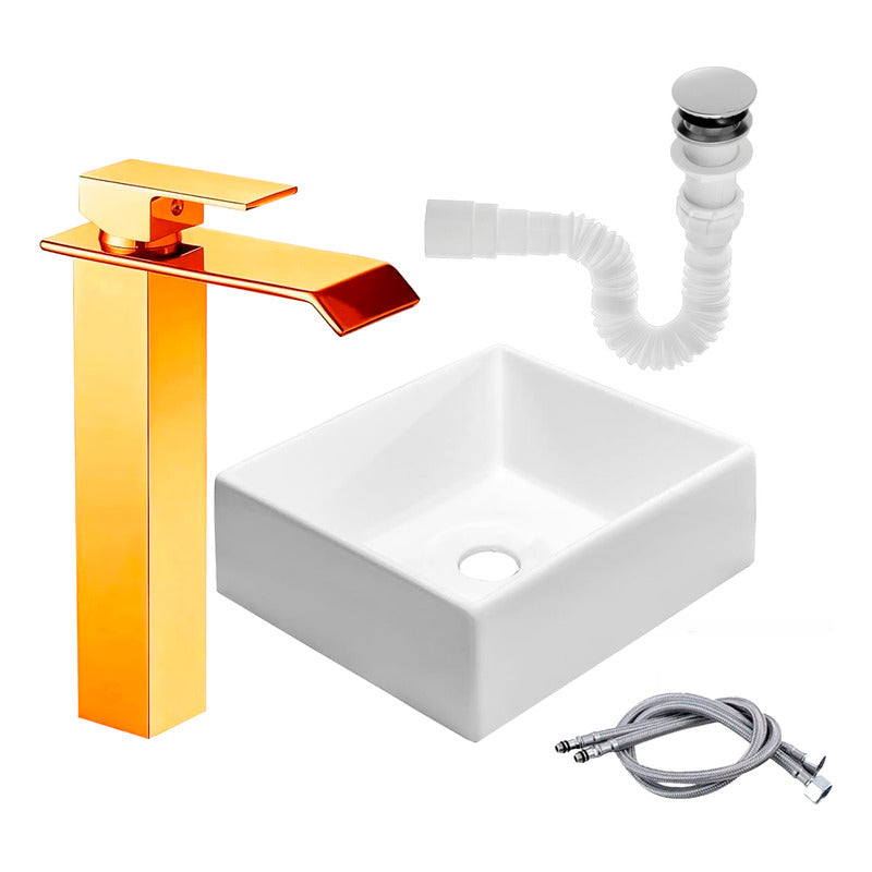 Kit Lavamanos Cuadrado+grifo Monocontrol Oro Brillante+push