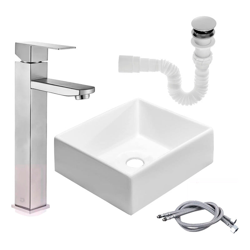 Kit Lavamanos Cuadrado+grifo Monocontrol Cuadrada Satinada+p