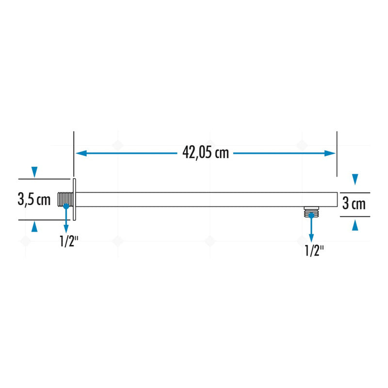 Ducha Regadera Acero Inox. Cuadrada 30cm + Tubo Cuadrado