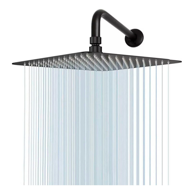 Ducha Regadera Acero Inox. Cuadrada 30cm Negro Mate + Tubo