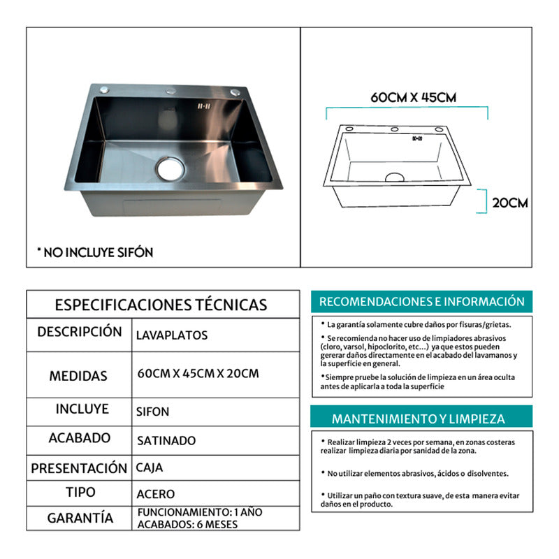 Lavaplatos en Acero 60*45*20cm Negro+Accesorios SKU:6045B PREGUNTAS FRECUENTES ¿GENERAN FACTURA? Sí, emitimos facturas legales con IVA incluido. Somos un régimen común y realizamos facturación electrónica. ¿MANEJAN VARIEDAD DE TONOS? Sí, manejamos una amplia gama de colores, como bronce y cobre antiguo, para personalizar tus griferías y accesorios. Realizamos acabados de aspecto antiguo en griferías nuevas o usadas. Transformamos tus griferías para darles un toque clásico y elegante. ¿SON FABRICANTES? Sí, somos fabricantes de tus ideas. Fabricamos hermosas griferías y accesorios de excelente calidad para embellecer tus espacios de la mejor manera. En GRIFOS CENTER, convertimos tus ideas en realidad. Fabricamos griferías VINTAGE y ofrecemos diversos estilos de acabados antiguos para tus griferías y accesorios. Además, proporcionamos una amplia variedad de productos de alta calidad para el hogar y productos institucionales para tus proyectos. ¿GENERAN FACTURA LEGAL Y ELECTRÓNICA? Sí, generamos factura legal con IVA incluido y ofrecemos facturación electrónica. ¿MI COMPRA TIENE GARANTÍA? Todos nuestros productos son nuevos y cuentan con garantía oficial de 1 año. Se entregan en sus empaques o cajas originales. ¿TIENEN PUNTO DE VENTA? Sí, somos GRIFOS CENTER y tenemos un punto de venta físico donde puedes recoger tus productos directamente si lo deseas. ¿DÓNDE ESTÁN UBICADOS? Nos encontramos en el Norte de Bogotá. Tenemos un amplio stock de nuestros productos para envío inmediato. Además, ofrecemos la opción de recoger tus compras en nuestro punto de venta. ¿MANEJAN PRODUCTOS PARA PROYECTOS? Sí, ofrecemos una amplia variedad de productos y contamos con un extenso inventario para atender proyectos grandes, como constructoras, hoteles, colegios y grandes superficies. ¿OFRECEN PRODUCTOS AL POR MAYOR? Sí, contamos con un extenso inventario y una gran variedad de productos para atender tus solicitudes. ¿HACEN ENVÍOS A NIVEL NACIONAL? Sí, GRIFOS CENTER realiza envíos a nivel nacional. ¿SE PUEDEN RETIRAR LOS PRODUCTOS EN EL PUNTO DE VENTA? Ofrecemos la opción de retirar productos en nuestro punto de venta o de enviarlos por otra transportadora, seleccionando "recojo en el domicilio del vendedor". En este caso, el comprador se encarga del costo del envío. NOTA IMPORTANTE: Los logos en la publicación son marcas de agua y el producto te llegará sin este logo. ----------------------SOMOS IMPORTADORES CON MARCA PROPIA-----------------------