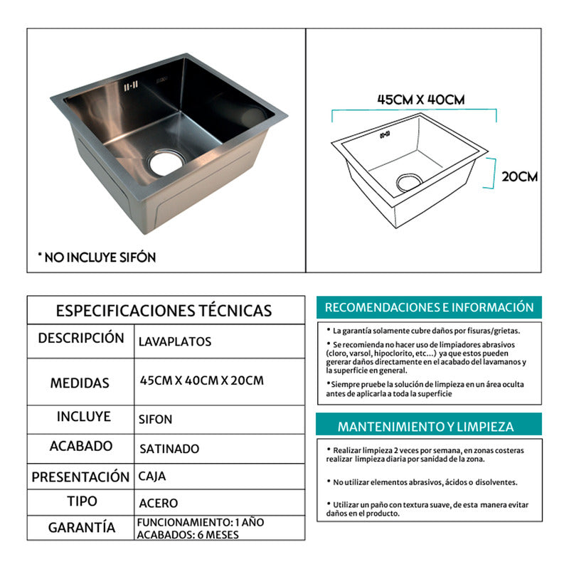 Lavaplatos En Acero 45*40*20cm Negro+accesorios