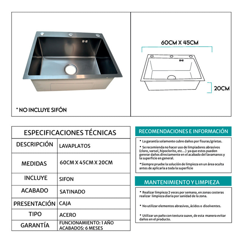 Lavaplatos en Acero 60*45*20cm Negro Panal+Accesorios SKU:6045B-1 PREGUNTAS FRECUENTES ¿GENERAN FACTURA? Sí, emitimos facturas legales con IVA incluido. Somos un régimen común y realizamos facturación electrónica. ¿MANEJAN VARIEDAD DE TONOS? Sí, manejamos una amplia gama de colores, como bronce y cobre antiguo, para personalizar tus griferías y accesorios. Realizamos acabados de aspecto antiguo en griferías nuevas o usadas. Transformamos tus griferías para darles un toque clásico y elegante. ¿SON FABRICANTES? Sí, somos fabricantes de tus ideas. Fabricamos hermosas griferías y accesorios de excelente calidad para embellecer tus espacios de la mejor manera. En GRIFOS CENTER, convertimos tus ideas en realidad. Fabricamos griferías VINTAGE y ofrecemos diversos estilos de acabados antiguos para tus griferías y accesorios. Además, proporcionamos una amplia variedad de productos de alta calidad para el hogar y productos institucionales para tus proyectos. ¿GENERAN FACTURA LEGAL Y ELECTRÓNICA? Sí, generamos factura legal con IVA incluido y ofrecemos facturación electrónica. ¿MI COMPRA TIENE GARANTÍA? Todos nuestros productos son nuevos y cuentan con garantía oficial de 1 año. Se entregan en sus empaques o cajas originales. ¿TIENEN PUNTO DE VENTA? Sí, somos GRIFOS CENTER y tenemos un punto de venta físico donde puedes recoger tus productos directamente si lo deseas. ¿DÓNDE ESTÁN UBICADOS? Nos encontramos en el Norte de Bogotá. Tenemos un amplio stock de nuestros productos para envío inmediato. Además, ofrecemos la opción de recoger tus compras en nuestro punto de venta. ¿MANEJAN PRODUCTOS PARA PROYECTOS? Sí, ofrecemos una amplia variedad de productos y contamos con un extenso inventario para atender proyectos grandes, como constructoras, hoteles, colegios y grandes superficies. ¿OFRECEN PRODUCTOS AL POR MAYOR? Sí, contamos con un extenso inventario y una gran variedad de productos para atender tus solicitudes. ¿HACEN ENVÍOS A NIVEL NACIONAL? Sí, GRIFOS CENTER realiza envíos a nivel nacional. ¿SE PUEDEN RETIRAR LOS PRODUCTOS EN EL PUNTO DE VENTA? Ofrecemos la opción de retirar productos en nuestro punto de venta o de enviarlos por otra transportadora, seleccionando "recojo en el domicilio del vendedor". En este caso, el comprador se encarga del costo del envío. NOTA IMPORTANTE: Los logos en la publicación son marcas de agua y el producto te llegará sin este logo. ----------------------SOMOS IMPORTADORES CON MARCA PROPIA-----------------------