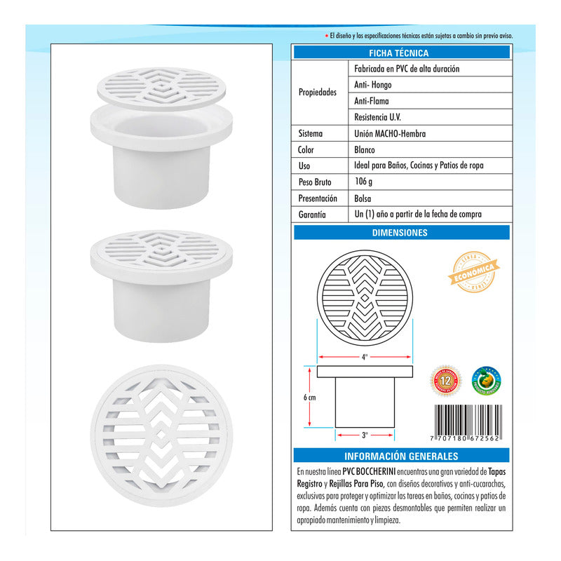 Rejilla de Piso Sifon 3X1.5 en PVC negra SKU:RS-3X1.5-07 PREGUNTAS FRECUENTES: ¿GENERAN FACTURA? Sí, emitimos facturas legales con IVA incluido. Somos un régimen común y realizamos facturación electrónica. ¿MANEJAN VARIEDAD DE TONOS? Si, manejamos una amplia gama de colores entre bronce, cobre antiguo para personalizar tus griferías y accesorios. Realizamos acabados de aspecto antiguo en griferías nuevas o usadas. Transformamos tus griferías para darles un toque clásico y elegante. ¿SON FABRICANTES? Si, somos fabricantes de tus ideas, fabricamos hermosas griferias y accesorios de excelente calidad para que amables tus espacios de la mejor manera. En GRIFOS CENTER, convertimos tus ideas en realidad. Fabricamos griferías VINTAGE y ofrecemos diversos estilos de acabados antiguos para tus griferías y acesorios. Además, proporcionamos una amplia variedad de productos de alta calidad para el hogar y productos institucionales para tus proyectos. ¿Generan factura legal y electrónica? Sí, generamos factura legal con IVA incluido y ofrecemos facturación electrónica. ¿Mi compra tiene garantía? Todos nuestros productos son nuevos y cuentan con garantía oficial de 1año. Se entregan en sus empaques o cajas originales. ¿Tienen punto de venta? Sí, somos GRIFOS CENTER y tenemos un punto de venta físico donde puedes recoger tus productos directamente si lo deseas. ¿Dónde están ubicados? Nos encontramos en el Norte de Bogotá. Tenemos un amplio stock de nuestros productos para envío inmediato. Además, ofrecemos la opción de recoger tus compras en nuestro punto de venta. ¿MANEJAN PRODUCTOS PARA PROYECTOS? Sí ofrecemos amplia variedad de productos y contamos con un extenso inventario y una variedad de productos para atender proyectos grandes, como constructoras, hoteles, colegios y grandes superficies. ¿Ofrecen productos al por mayor? Sí, contamos con un extenso inventario y una gran variedad de productos para atender tus solicitudes ¿Hacen envíos a nivel nacional? Sí, GRIFOS CENTER realiza envíos a nivel nacional. ¿Se pueden retirar los productos en el punto de venta? Ofrecemos la opción de retirar productos en nuestro punto de venta o de enviarlos por otra transportadora, seleccionando "recojo en el domicilio del vendedor". En este caso, el comprador se encarga del costo del envío. NOTA IMPORTANTE: Los logos en la publicación son marcas de agua y el producto te llegará sin este logo. ----------------------SOMOS IMPORTADORES CON MARCA PROPIA---------------------------