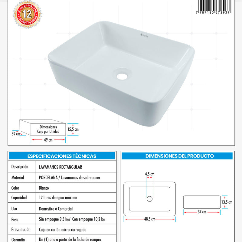 Combo Lavamanos Rectang.+Griferia Monocontrol+Push+SifonGF12 SKU: 010100608-T TMM-YW080 BOCH-16161552 UF-BYJ-S023SM INCLUYE: -Grifería Monocontrol Alta Plateada -Lavamanos rectangular Porcelana Blanco -Push de lavamanos cromado -Sifón en "P" Acero cromado PREGUNTAS FRECUENTES ¿GENERAN FACTURA? Sí, emitimos facturas legales con IVA incluido. Somos un régimen común y realizamos facturación electrónica. ¿MANEJAN VARIEDAD DE TONOS? Sí, manejamos una amplia gama de colores, como bronce y cobre antiguo, para personalizar tus griferías y accesorios. Realizamos acabados de aspecto antiguo en griferías nuevas o usadas. Transformamos tus griferías para darles un toque clásico y elegante. ¿SON FABRICANTES? Sí, somos fabricantes de tus ideas. Fabricamos hermosas griferías y accesorios de excelente calidad para embellecer tus espacios de la mejor manera. En GRIFOS CENTER, convertimos tus ideas en realidad. Fabricamos griferías VINTAGE y ofrecemos diversos estilos de acabados antiguos para tus griferías y accesorios. Además, proporcionamos una amplia variedad de productos de alta calidad para el hogar y productos institucionales para tus proyectos. ¿GENERAN FACTURA LEGAL Y ELECTRÓNICA? Sí, generamos factura legal con IVA incluido y ofrecemos facturación electrónica. ¿MI COMPRA TIENE GARANTÍA? Todos nuestros productos son nuevos y cuentan con garantía oficial de 1 año. Se entregan en sus empaques o cajas originales. ¿TIENEN PUNTO DE VENTA? Sí, somos GRIFOS CENTER y tenemos un punto de venta físico donde puedes recoger tus productos directamente si lo deseas. ¿DÓNDE ESTÁN UBICADOS? Nos encontramos en el Norte de Bogotá. Tenemos un amplio stock de nuestros productos para envío inmediato. Además, ofrecemos la opción de recoger tus compras en nuestro punto de venta. ¿MANEJAN PRODUCTOS PARA PROYECTOS? Sí, ofrecemos una amplia variedad de productos y contamos con un extenso inventario para atender proyectos grandes, como constructoras, hoteles, colegios y grandes superficies. ¿OFRECEN PRODUCTOS AL POR MAYOR? Sí, contamos con un extenso inventario y una gran variedad de productos para atender tus solicitudes. ¿HACEN ENVÍOS A NIVEL NACIONAL? Sí, GRIFOS CENTER realiza envíos a nivel nacional. ¿SE PUEDEN RETIRAR LOS PRODUCTOS EN EL PUNTO DE VENTA? Ofrecemos la opción de retirar productos en nuestro punto de venta o de enviarlos por otra transportadora, seleccionando "recojo en el domicilio del vendedor". En este caso, el comprador se encarga del costo del envío. NOTA IMPORTANTE: Los logos en la publicación son marcas de agua y el producto te llegará sin este logo. ----------------------SOMOS IMPORTADORES CON MARCA PROPIA-----------------------