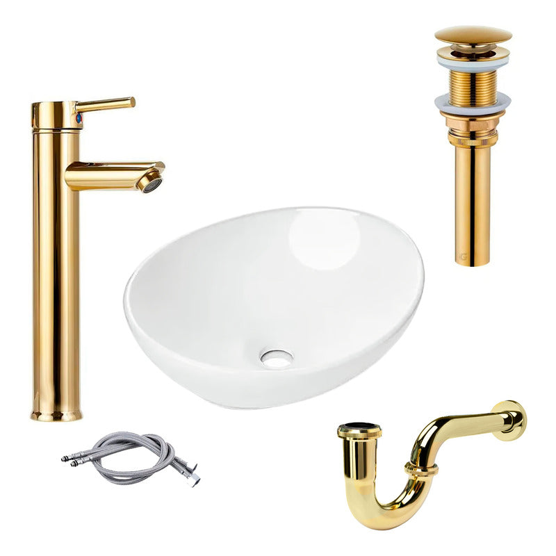 Combo Lavamanos Canoa+griferia Monoc +push+sifon Oro Gf4