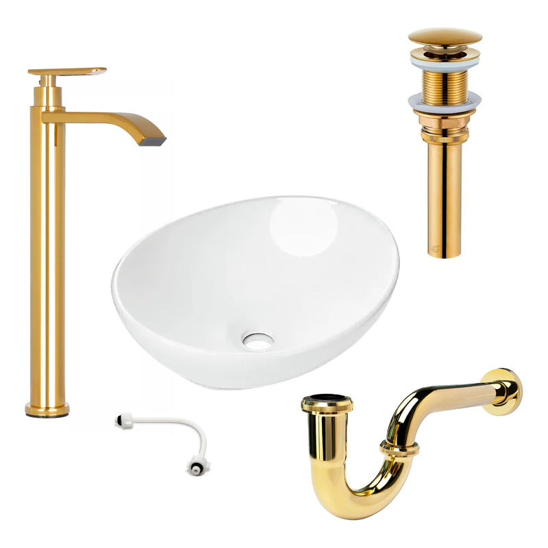 Combo Lavamanos Canoa+griferia Ag.fria+push+sifon Oro Gf1