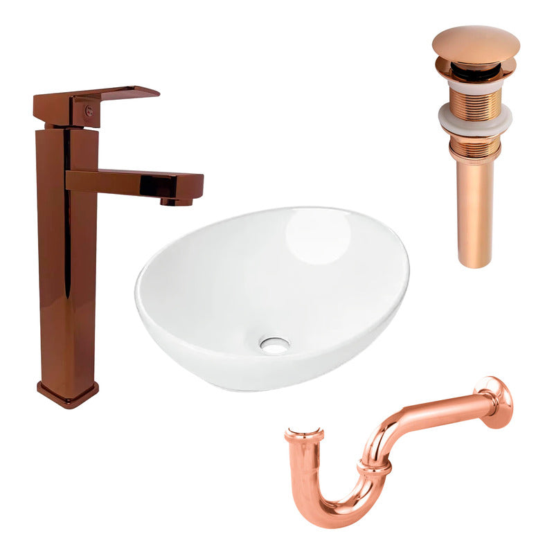 Combo Lavamanos Canoa+griferia Monoc.+push+sifon Oro Rosa