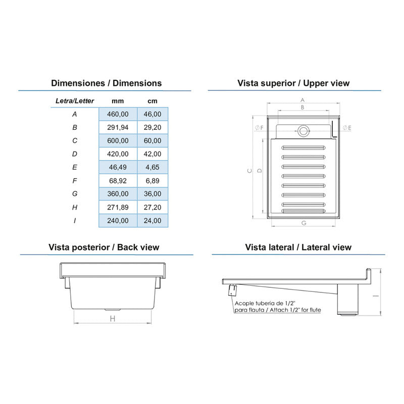 Lavadero Plastico 60*46cm Blanco con Flauta SKU: 510-532-15 PREGUNTAS FRECUENTES ¿GENERAN FACTURA? Sí, emitimos facturas legales con IVA incluido. Somos un régimen común y realizamos facturación electrónica. ¿MANEJAN VARIEDAD DE TONOS? Sí, manejamos una amplia gama de colores, como bronce y cobre antiguo, para personalizar tus griferías y accesorios. Realizamos acabados de aspecto antiguo en griferías nuevas o usadas. Transformamos tus griferías para darles un toque clásico y elegante. ¿SON FABRICANTES? Sí, somos fabricantes de tus ideas. Fabricamos hermosas griferías y accesorios de excelente calidad para embellecer tus espacios de la mejor manera. En GRIFOS CENTER, convertimos tus ideas en realidad. Fabricamos griferías VINTAGE y ofrecemos diversos estilos de acabados antiguos para tus griferías y accesorios. Además, proporcionamos una amplia variedad de productos de alta calidad para el hogar y productos institucionales para tus proyectos. ¿GENERAN FACTURA LEGAL Y ELECTRÓNICA? Sí, generamos factura legal con IVA incluido y ofrecemos facturación electrónica. ¿MI COMPRA TIENE GARANTÍA? Todos nuestros productos son nuevos y cuentan con garantía oficial de 1 año. Se entregan en sus empaques o cajas originales. ¿TIENEN PUNTO DE VENTA? Sí, somos GRIFOS CENTER y tenemos un punto de venta físico donde puedes recoger tus productos directamente si lo deseas. ¿DÓNDE ESTÁN UBICADOS? Nos encontramos en el Norte de Bogotá. Tenemos un amplio stock de nuestros productos para envío inmediato. Además, ofrecemos la opción de recoger tus compras en nuestro punto de venta. ¿MANEJAN PRODUCTOS PARA PROYECTOS? Sí, ofrecemos una amplia variedad de productos y contamos con un extenso inventario para atender proyectos grandes, como constructoras, hoteles, colegios y grandes superficies. ¿OFRECEN PRODUCTOS AL POR MAYOR? Sí, contamos con un extenso inventario y una gran variedad de productos para atender tus solicitudes. ¿HACEN ENVÍOS A NIVEL NACIONAL? Sí, GRIFOS CENTER realiza envíos a nivel nacional. ¿SE PUEDEN RETIRAR LOS PRODUCTOS EN EL PUNTO DE VENTA? Ofrecemos la opción de retirar productos en nuestro punto de venta o de enviarlos por otra transportadora, seleccionando "recojo en el domicilio del vendedor". En este caso, el comprador se encarga del costo del envío. NOTA IMPORTANTE: Los logos en la publicación son marcas de agua y el producto te llegará sin este logo. ----------------------SOMOS IMPORTADORES CON MARCA PROPIA-----------------------