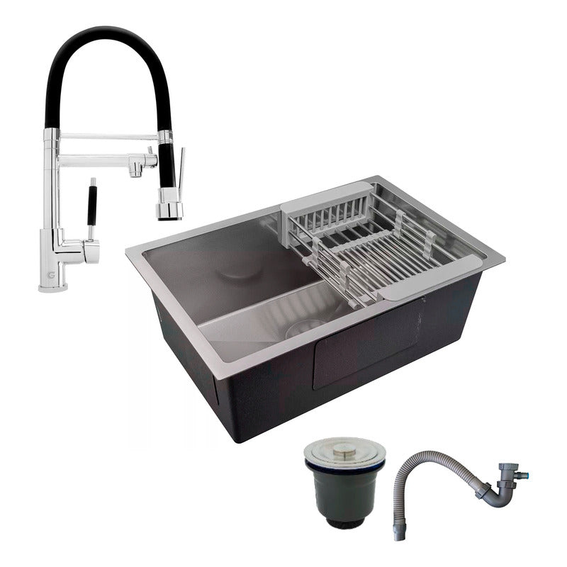 Combo Lavaplatos 60*45cm+griferia Escualizable+accesorios