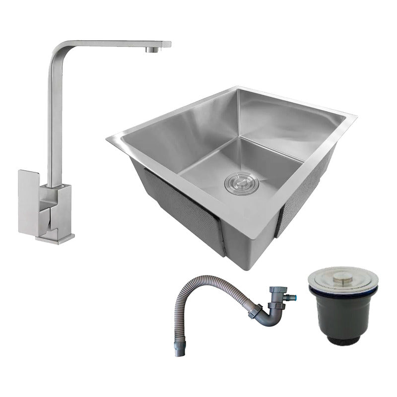 Combo Lavaplatos 51*45cm+griferia L Satinada+accesorios