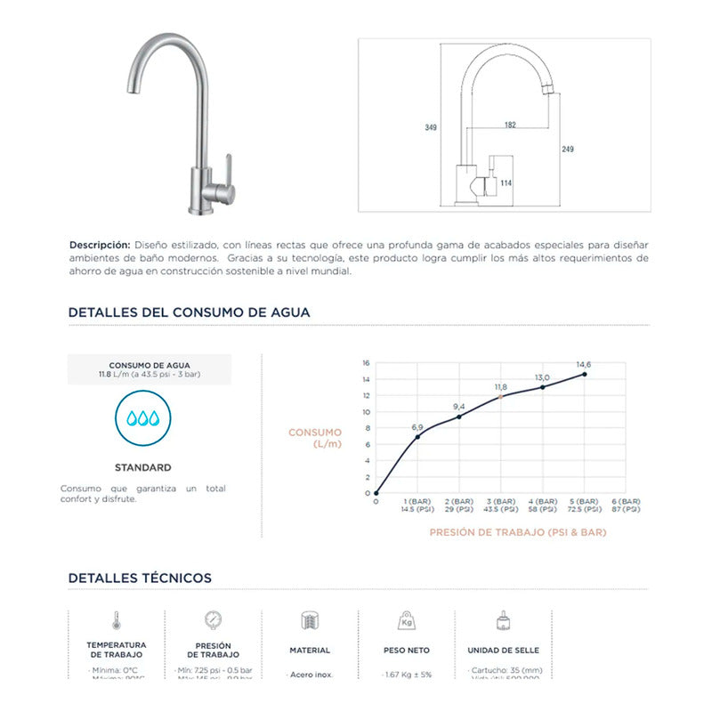 Combo Lavaplatos 51*45cm+griferia Plat.canella+accesorios