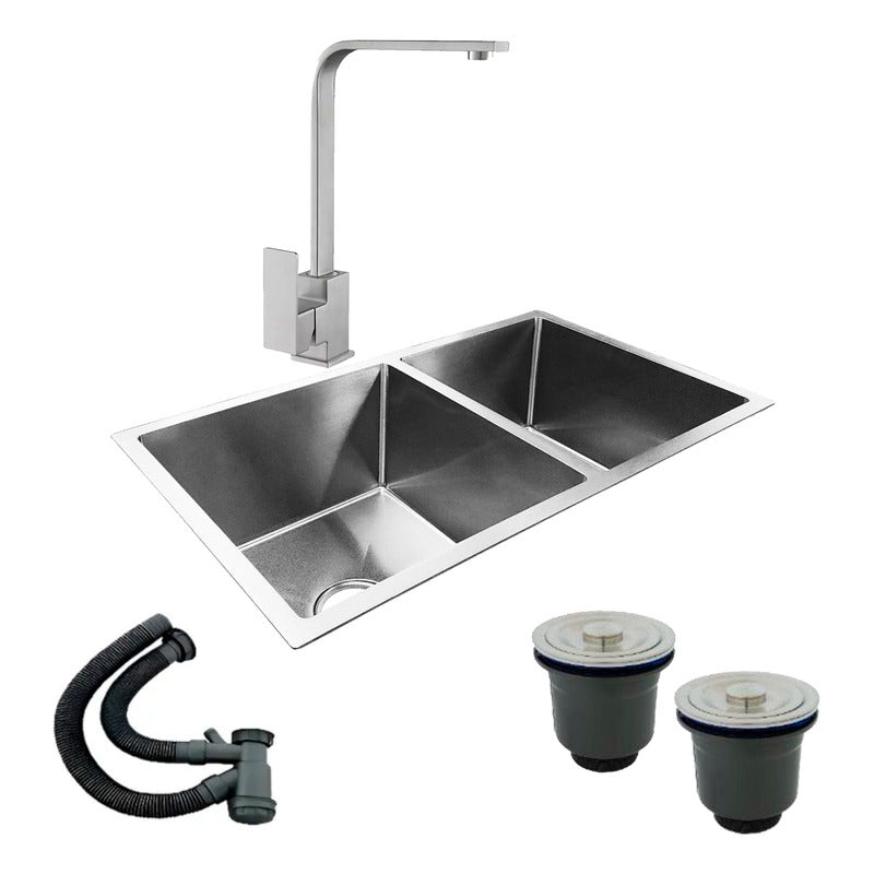 Combo Lavaplatos Doble 77*45cm+griferia L Satin+accesorios