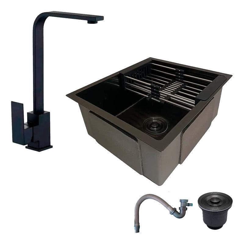 Combo Lavaplatos 51*45cm+griferia Lvp Negra L + Accesorios