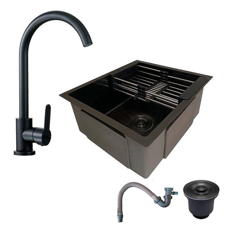 Combo Lavaplatos 51*45cm+griferia Lvp Negra Pala+ Accesorios