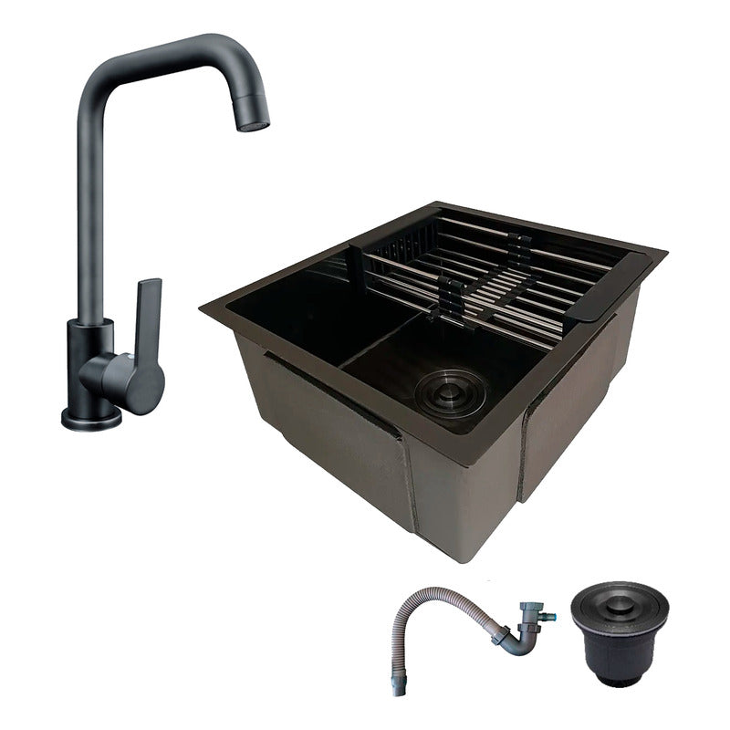 Combo Lavaplatos 51*45cm+griferia Lvp Negra Mate+ Accesorios