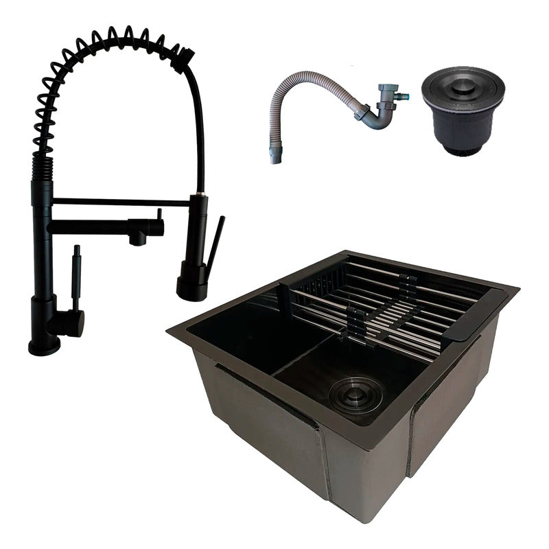 Combo Lavaplatos 51*45cm+griferia Lvp Negra 1905+ Accesorios