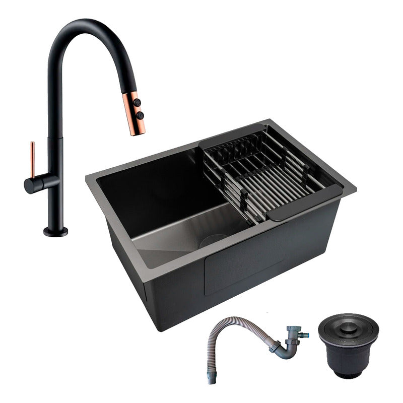 Combo Lavaplatos 70*45cm+griferia Lvp Negra-rosa+ Accesorios