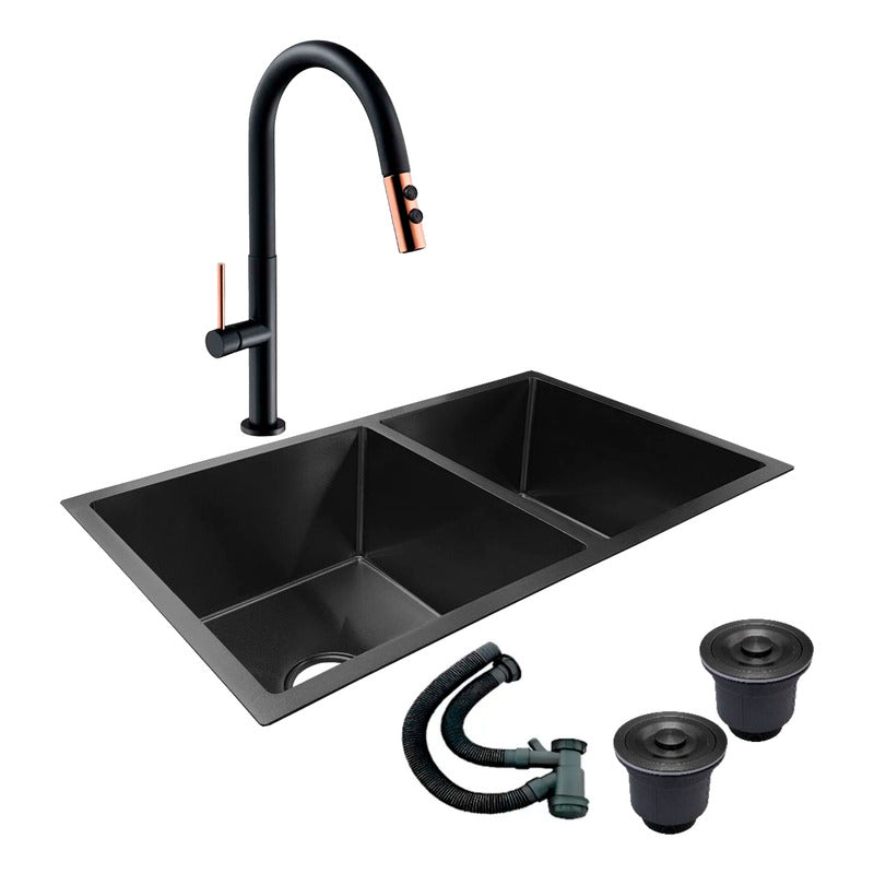 Combo Lavaplatos Doble 77*45cm+griferia Lvp Negra-rosa+ Acc