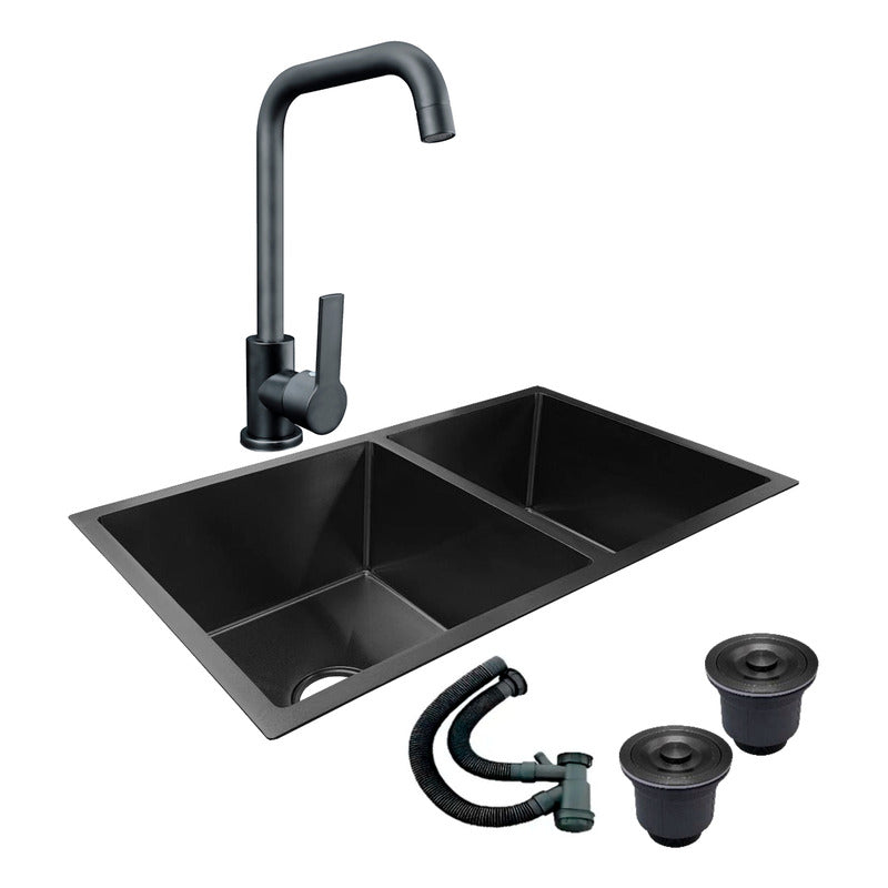Combo Lavaplatos Doble 77*45cm+griferia Lvp Negra Mate+ Acc