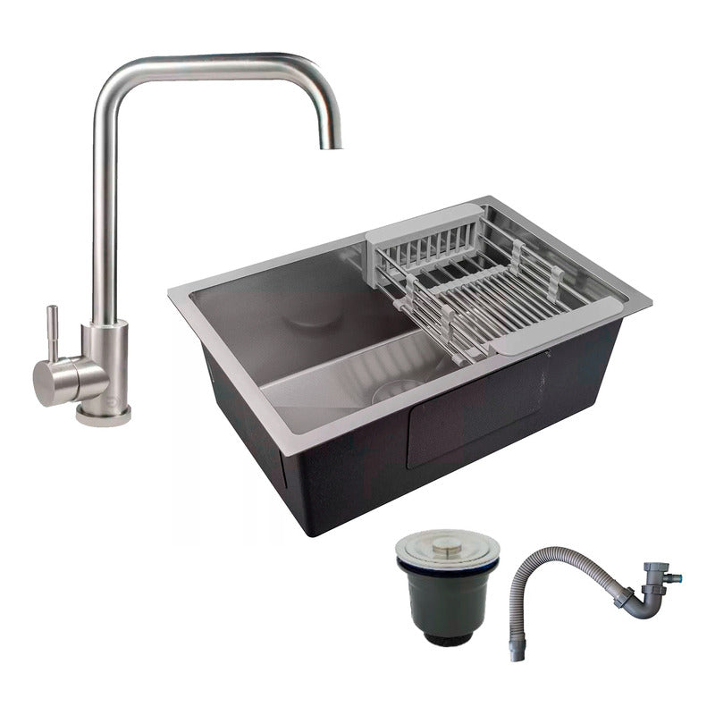Combo Lavaplatos 70*45cm+griferia Plata Cuello 7+accesorios