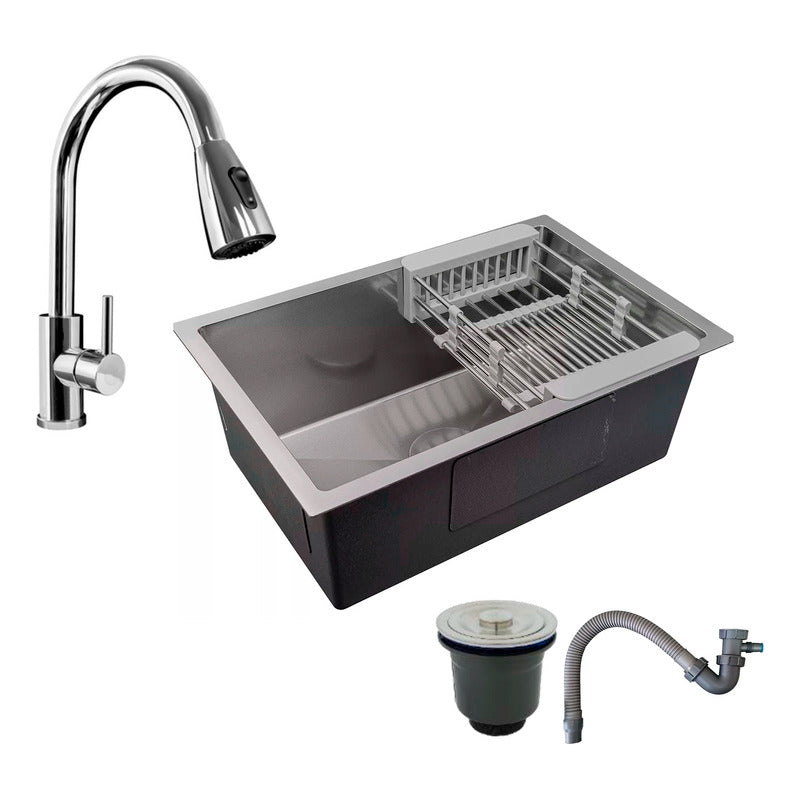 Combo Lavaplatos 70*45cm+griferia Extraible Cromo+accesorios