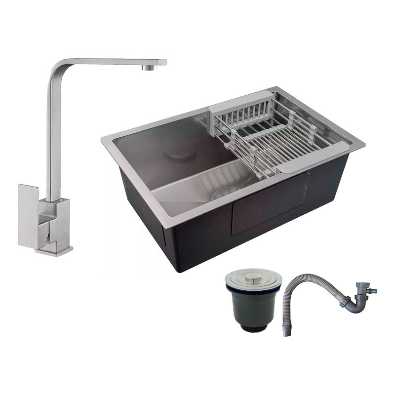 Combo Lavaplatos 70*45cm+griferia L Satinada+accesorios