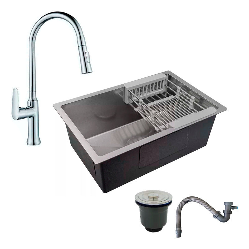 Combo Lavaplatos 70*45cm+grif.extraible Cromo+accesorios