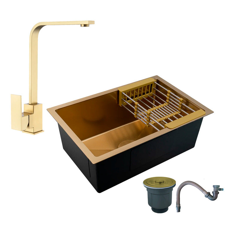 Combo Lavaplatos 70*45cm+griferia Lvp Oro L Cepillado+acc