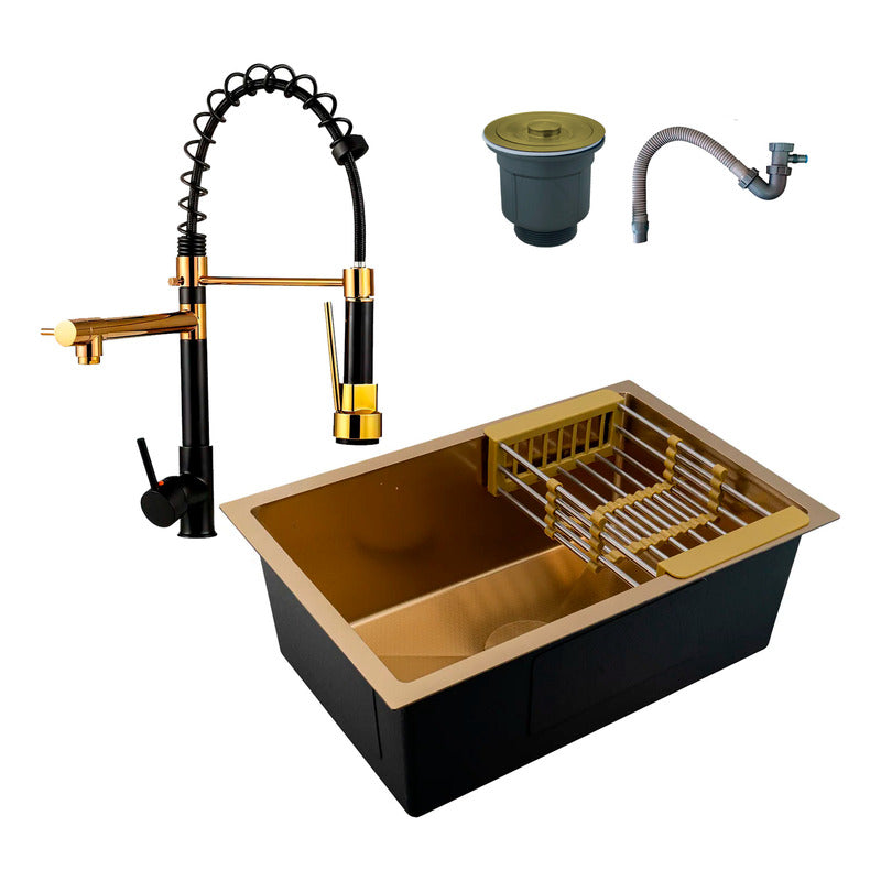 Combo Lavaplatos 70*45cm+griferia Lvp Gourmet Oro+accesorios