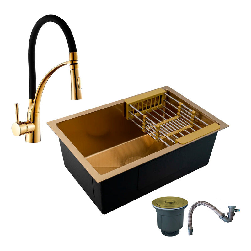 Combo Lavaplatos 70*45cm+griferia Lvp Oro Babilonia+acc